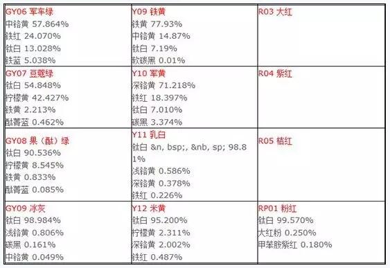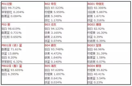 • 染料/色粉/油漆/調(diào)色配方參考表 2016-03-21